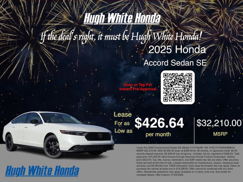 If the deal's right, it must be Hugh White! Stop in today and see why thousands of customers have trusted us with their new vehicles over the years! 2025 Honda Accord Platinum White Pearl