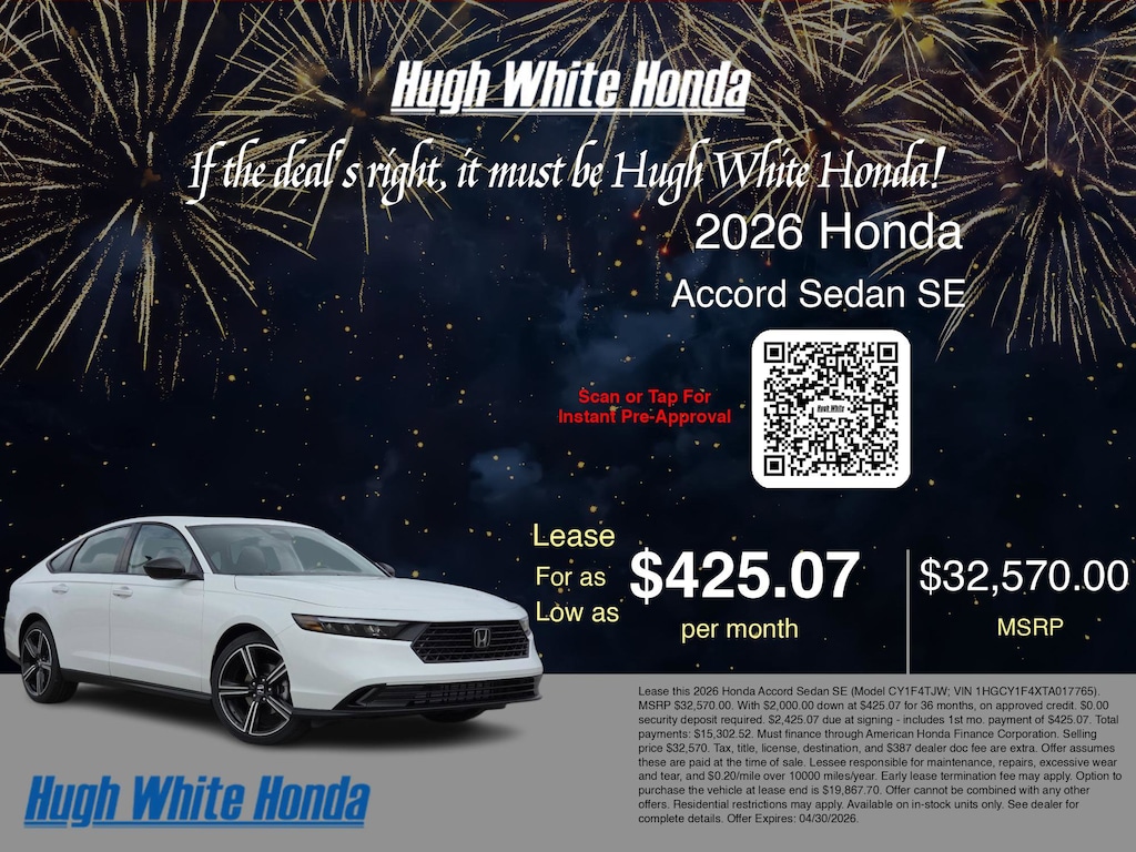 If the deal's right, it must be Hugh White! Stop in today and see why thousands of customers have trusted us with their new vehicles over the years! 2026 Honda Accord Platinum