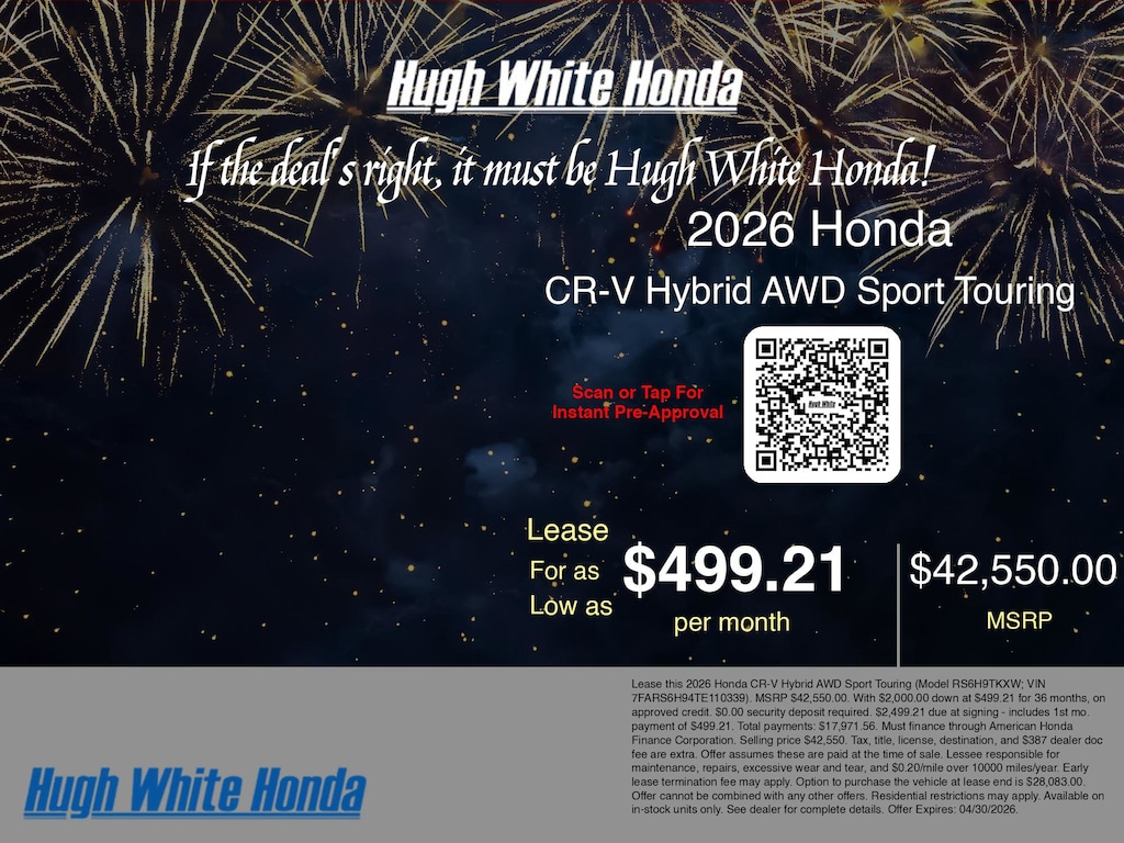 If the deal's right, it must be Hugh White! Stop in today and see why thousands of customers have trusted us with their new vehicles over the years! 2026 Honda CR-V Hybrid Meteorite Gray Metallic