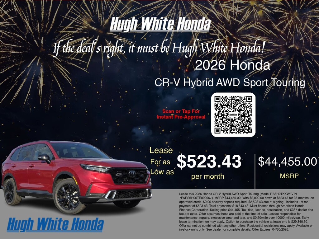 If the deal's right, it must be Hugh White! Stop in today and see why thousands of customers have trusted us with their new vehicles over the years! 2026 Honda CR-V Hybrid Radiant Red