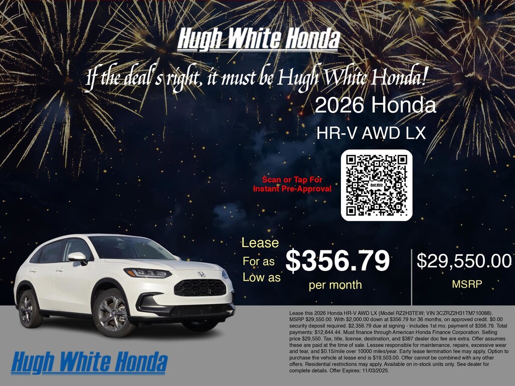 If the deal's right, it must be Hugh White! Stop in today and see why thousands of customers have trusted us with their new vehicles over the years! 2026 Honda HR-V Platinum