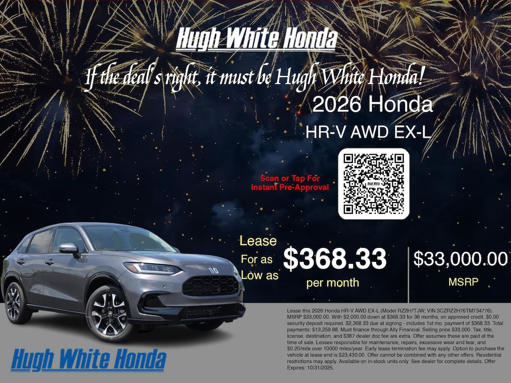 If the deal's right, it must be Hugh White! Stop in today and see why thousands of customers have trusted us with their new vehicles over the years! 2026 Honda HR-V Modern Steel Metallic