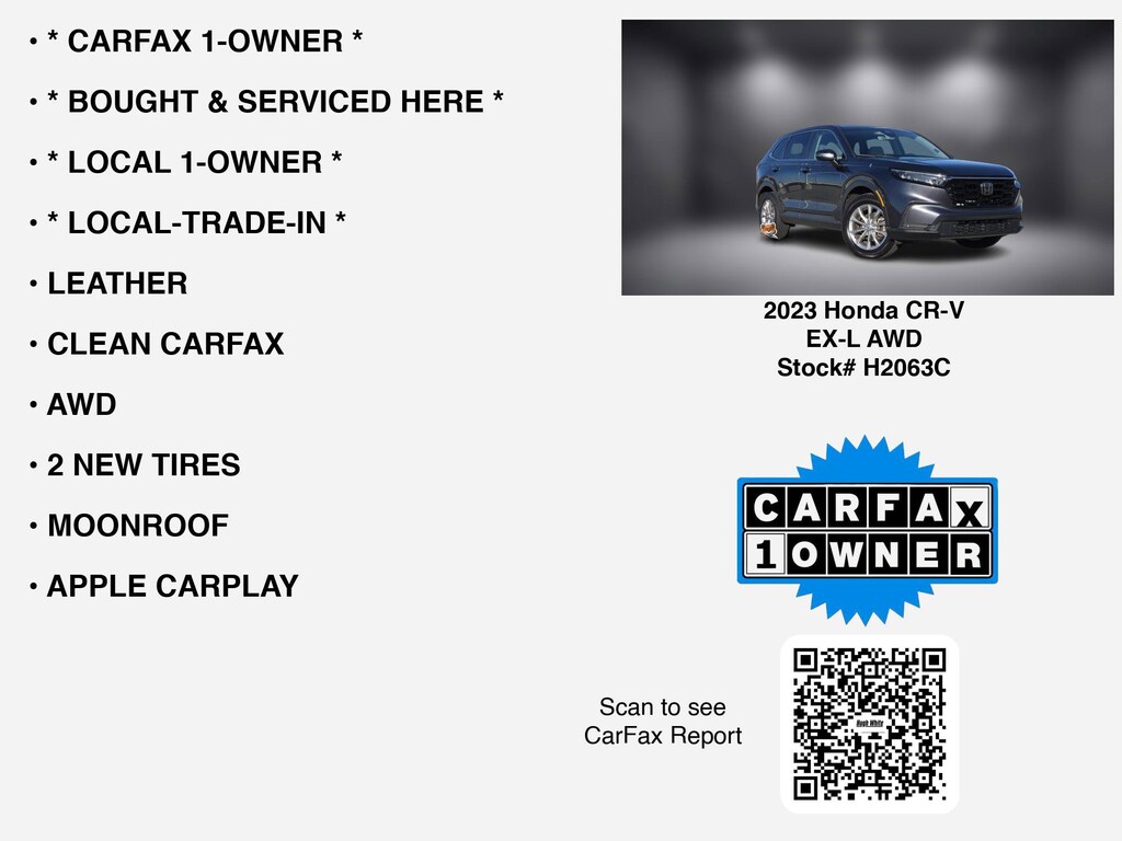 Free CARFAX report! This 2023 Honda CR-V EX-L AWD for sale near Columbus includes the following