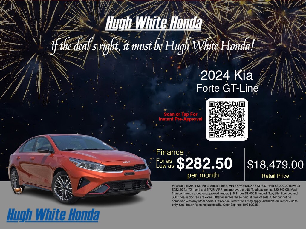 Discover Kia Forte GT-Line Exceptional Savings at Hugh White Honda!
