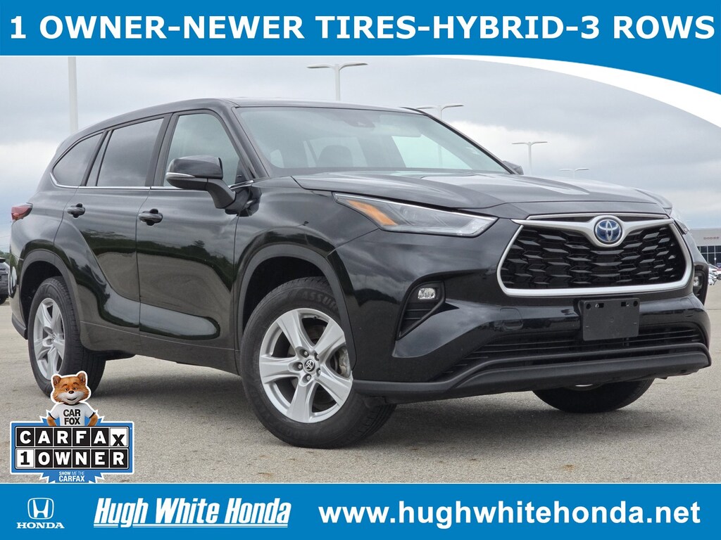 614-922-1111 TO SCHEDULE YOUR TEST DRIVE of this 2023 Toyota Highlander Hybrid Hybrid LE! Hugh White Honda serves Columbus. You can also visit us at, 1215 Auto Mall Dr #1360, Columbus, OH 43228 to check it out in person! Hugh White Honda Used car dealership only sells used cars Columbus, OH buyers can trust for safety and worry free driving.